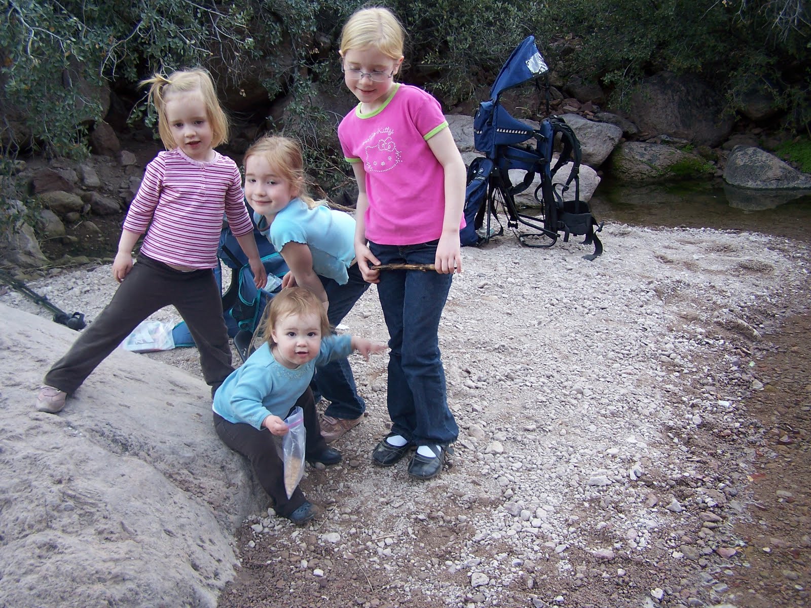 Jeff and I hiked with the girls up the Peralta Trail, till we found a good spot to play in the creek. All four of them were busy little bees from the moment we arrived.